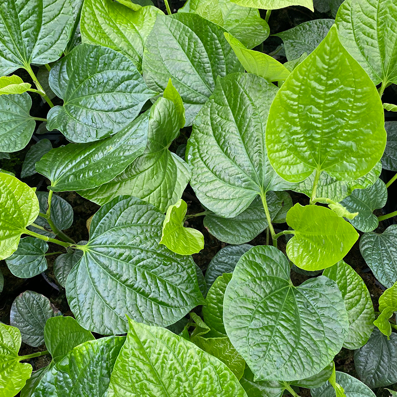 Belonging to the Piperaceae family the Betel plant is an evergreen perennial producing glossy heart shaped leaves.